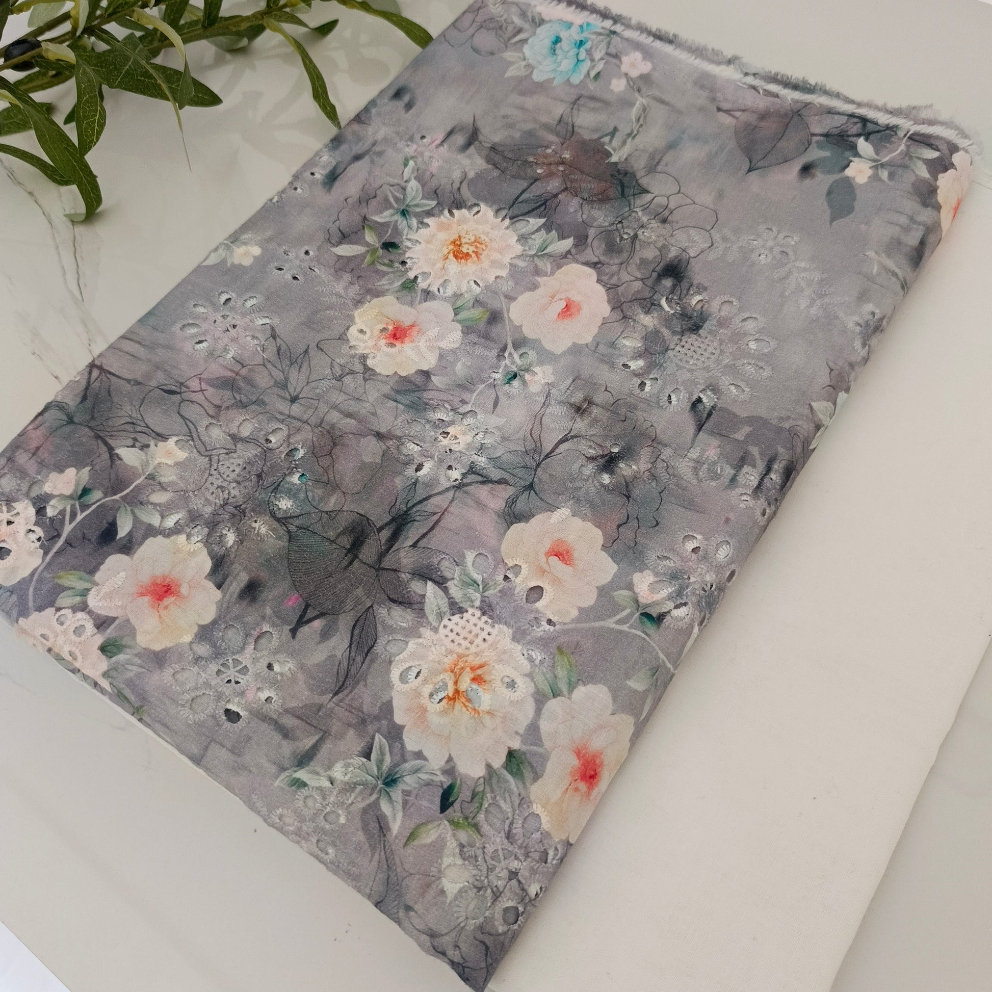 Imported Chicken Kari Lawn Shirt with Plain Trouser (Grey Floral)